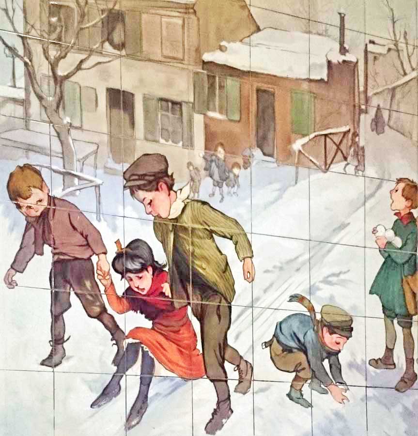 Cet ensemble, qui accueillait les clients du lieu, illustre le cycle des saisons sur la butte Montmartre par l’œil du quotidien de ses enfants : jeux de billes, farandoles, glissades, batailles de boules de neige…