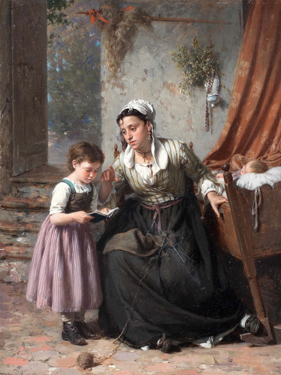 Durant les années 1870-1880, il réalise surtout des scènes de genre. Le plus souvent, il met en scène, dans des intérieurs paysans, des moments simples de la vie de tous les jours, ou des jeux d'enfants qui confèrent à ses œuvres une fraîcheur particulière.