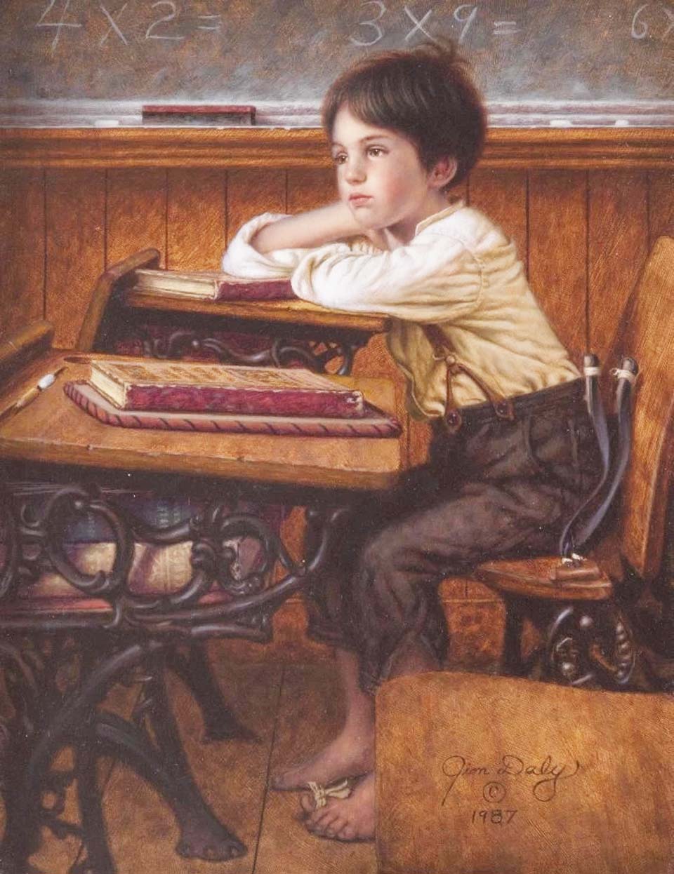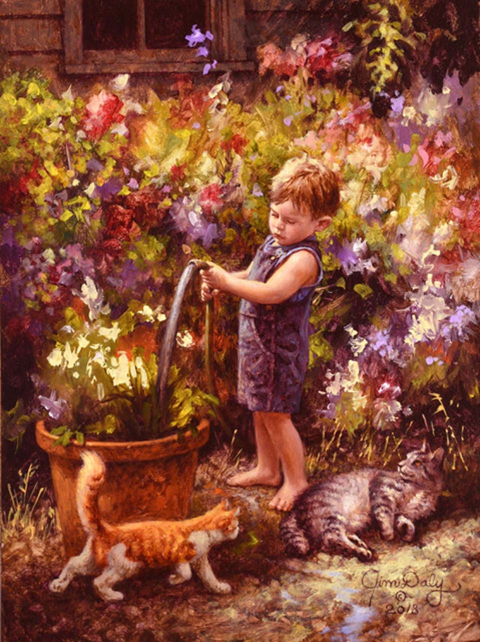 Né en 1940 à Holdenville, Oklahoma, Jim Daly a étudié au Art Center College of Design de Los Angeles, en Californie. Ses peintures de genre américain sont représentées dans de nombreuses collections privées et corporatives et ont reçu de nombreux prix.