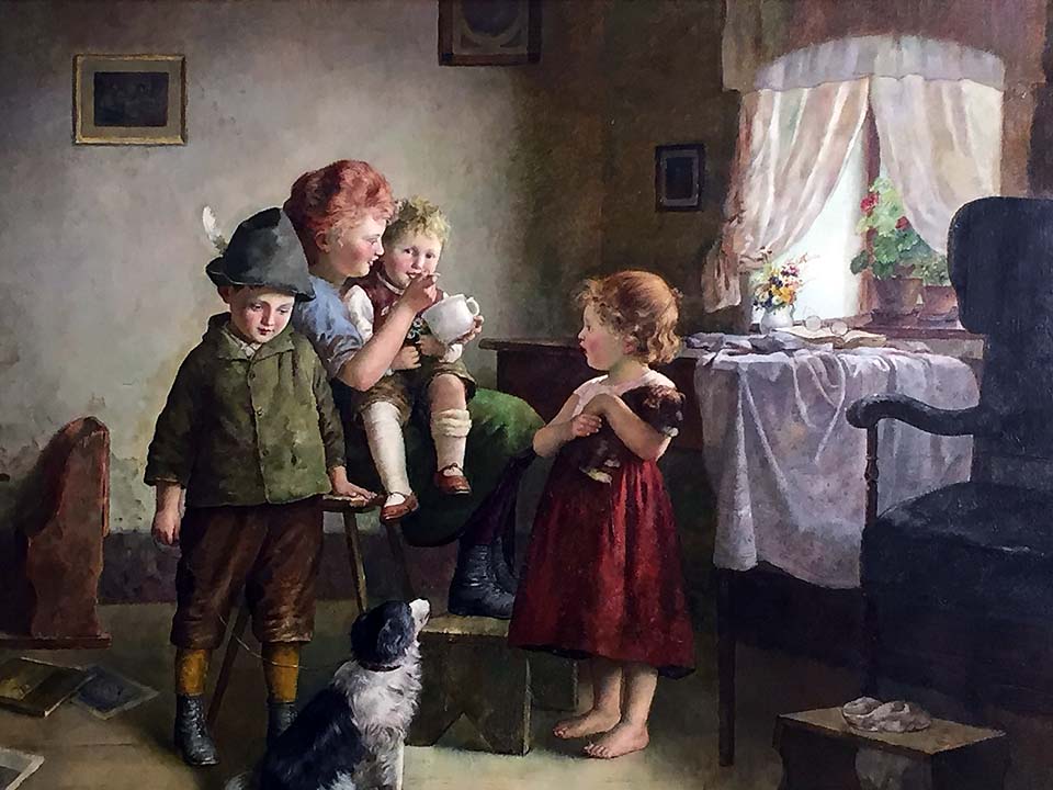Il n'a pas eu beaucoup de temps pour réaliser ses rêves artistiques car il a dû travailler dans les champs pendant environ un an à cause de la famine. Parallèlement, il commence à travailler ses portraits ; par exemple : La jeunesse et ma fille. Les moyens de subsistance étaient assurés par des travaux commandés pour des galeries d'art viennoises, telles que des études de portraits d'enfants et des scènes d'enfants. Il a signé certaines de ces œuvres avec le synonyme Edmund A. Rode.