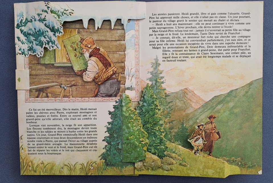 Pendant ce temps, dans la montagne enneigée, le grand-père est dans sa maison. Pierre arrive et apporte une lettre écrite par la grand-mère qui dit que Heidi est bien habituée à sa nouvelle vie. Le grand-père dit à Pierre qu’Heidi les a oubliés, Pierre est déçu. (F.N)